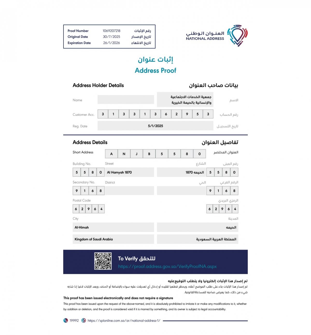 العنوان الوطني للجمعية